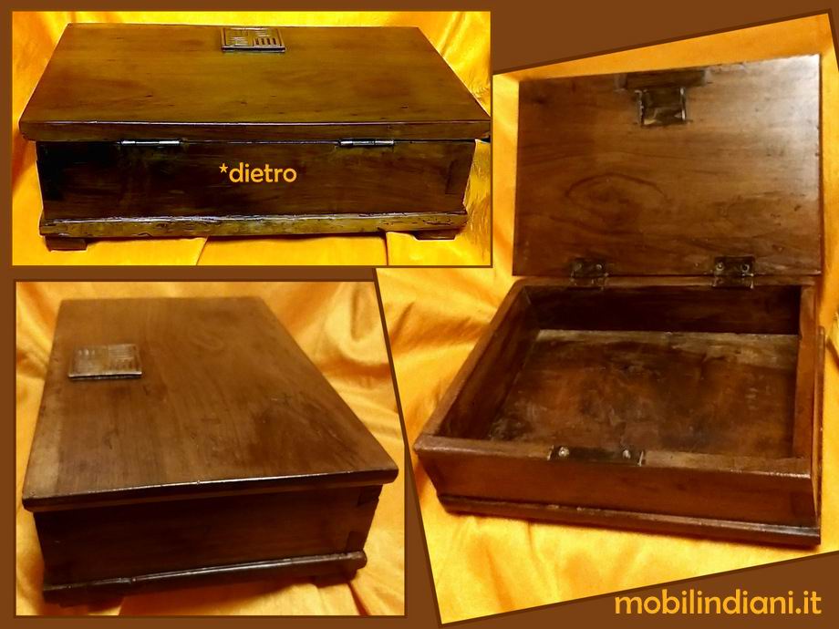 Disponibilità 1Scatola portagioie antica, di forma rettangolare in legno di noce con placchetta sul coperchio. Anni '50 Priva di serratura, con una bella patina compatibili con la datazione. Oggetto restaurato. Cm.31x20 h.10. Provenienza Italia COSTO TRASPORTO €. 35,38 Iva Inclusa. Per costi trasporto Isole, chiedi info su WhatsApp o mail: info@mobilindiani.it