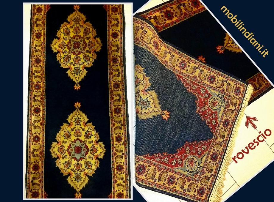 Disponibilità 1Passatoia persiana Saruq (o Saruk) Epoca prima metà XX Secolo. Fondo "blu Persia" intenso, medaglioni centrali e bordura floreale color crema. Cm.230x75 Tappeto pregiato di solidità struttura, lana soffice, eccellente e compatta (vedi foto) caratteristiche che li hanno resi famosi in tutto il mondo. Il tappeto Saruq, rientra nelle categorie più alte di tappeti persiani. COSTO TRASPORTO €. 29,00 Iva Inclusa. Per costi trasporto Isole, chiedi info su WhatsApp o mail: info@mobilindiani.it