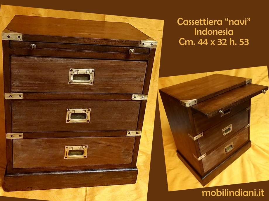 Disponibilità 1Cassettiera navale in mogano massello. Design Vintage, anni '70 Angolari e maniglie in ottone, tipiche di questo slile navale. Restaurata. Misura cm. 44x32 h.53 Provenienza Indonesia PER INFO COSTI SPEDIZIONE CHIEDI su WhatsApp o via mail: info@mobilindiani.it