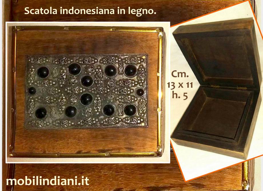 Scatola indonesiana portagioie in legno di balsa con inserti in metallo e pietre sintetiche. Cm.13x11 h.5 Paese Indonesia. COSTO TRASPORTO €. 8,80 iva inclusa.