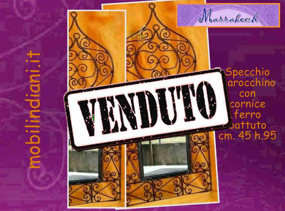 Specchio marocchino con cornice in ferro battuto colore brunito. Mis. con cornice: cm.45 h.95 - Mis. solo specchio: cm.22 h.39 Paese Marrakech, Marocco