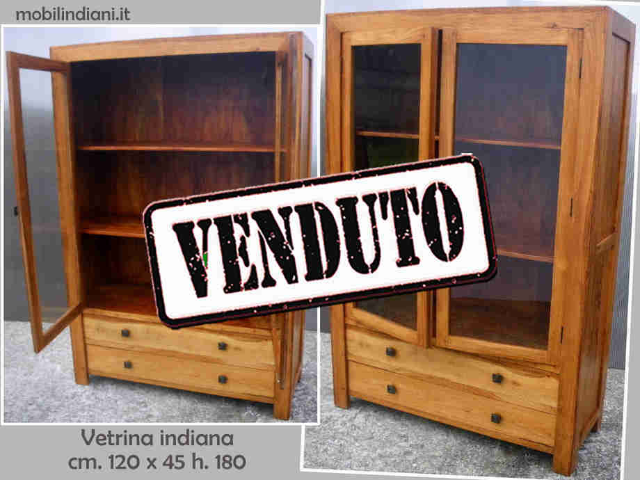 Disponibilità 0Vetrina indiana restaurata. 2/ante, ripiani interni + 2/cass. nella parte bassa. Cm.120x45 h.180 Legno sheesham (noce) anche il retro. Paese India